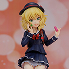 | [ローズフルール]の際に見せた制服姿!紺を基調とした制服とリボンのついた可愛らしい帽子が、桃華と非常にマッチしております。 |